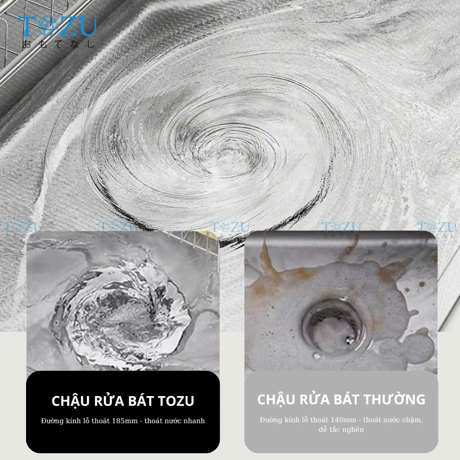 Lỗ xả lớn thoát nước nhanh, cốc lọc rác lớn tăng hiệu quả thu gom khi sơ chế